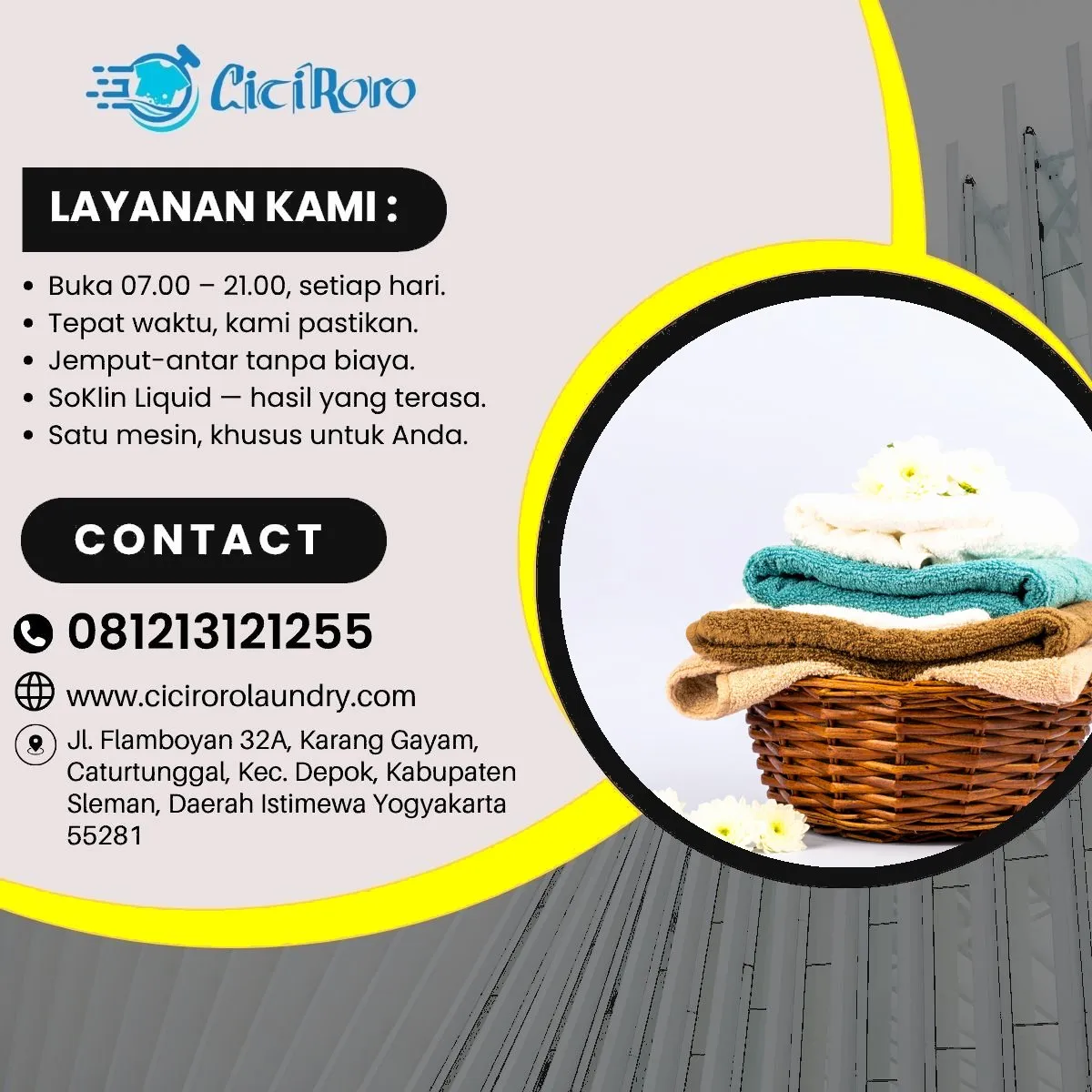 Manfaatkan layanan antar jemput dari CiciRoro Laundryβpraktis tanpa mengganggu waktu liburanmu.
